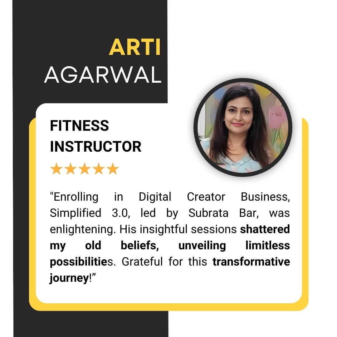 Enrolling in Digital Creator Business, Simplified 3.0, led by Subrata Bar, was enlightening. His insightful sessions shattered my old beliefs, unveiling limitless possibilities. Grateful for this transformative journey!